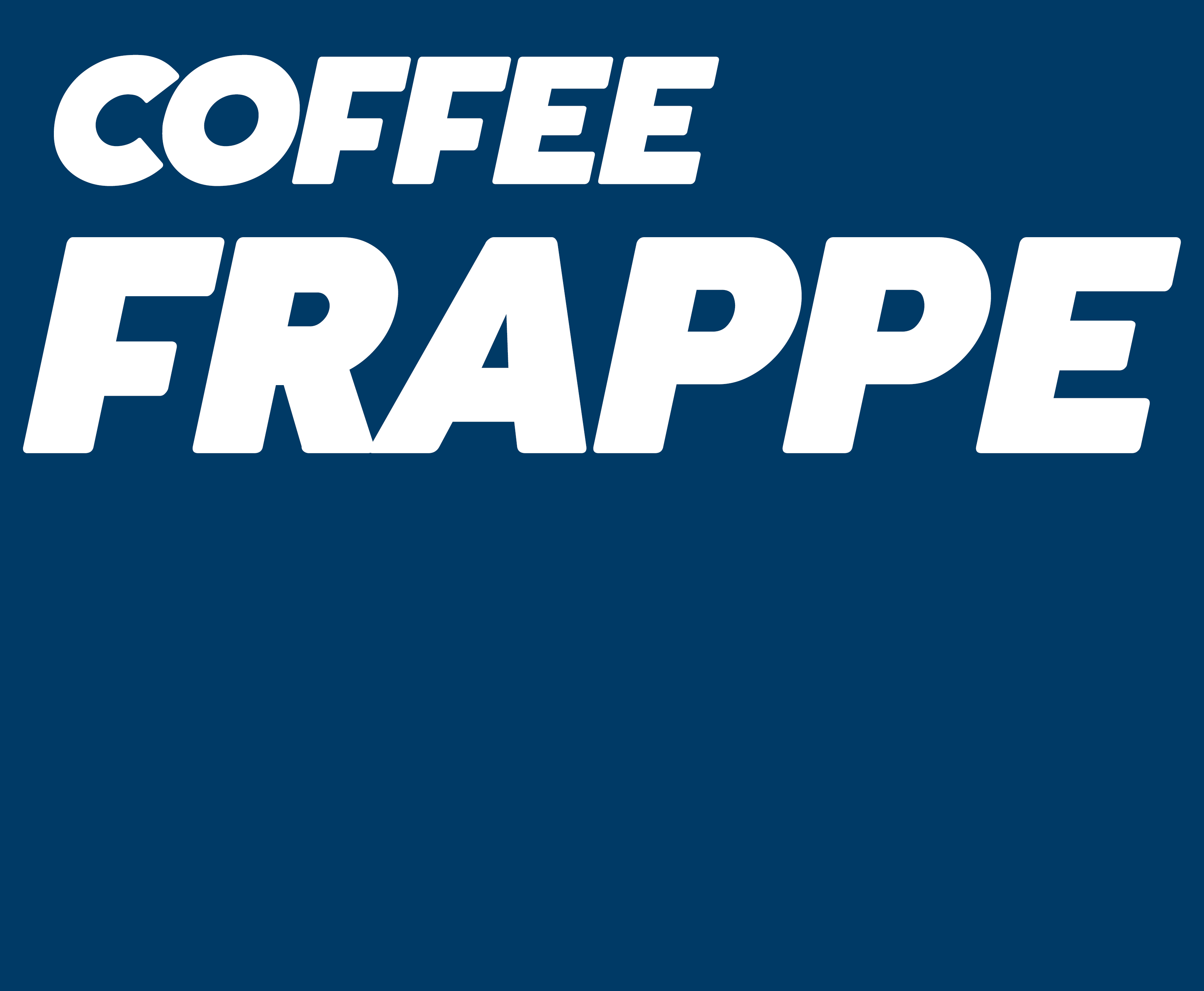 | FRAPPE | AMERICANO, LATTE, CAPPU, MOCHA, CMF, S.CMF, YAM, B.C MOCHA, BISCOFFEE, MOCHATELLA, MUDDY MATCHA |